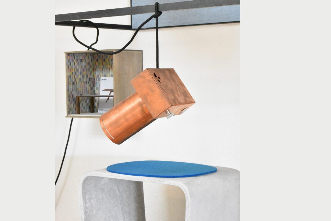 Eine Leuchte aus gefaltetem und gebogenem Kupferblech – ein einzigartiges Designobjekt, das warmes Licht mit der Eleganz handwerklicher Präzision vereint.